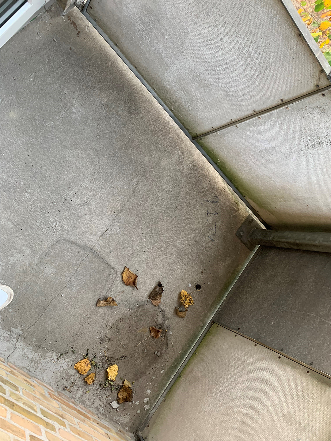 - Hvide og/eller rødbrune udfældninger på altanens underside